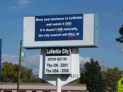 Yes, Virginia, We Really Were in Southern Utah This pair of gems is from the main drag in LaVerkin, Utah, and it goes a bit beyond some news stories I heard a while back about LaVerkin and the UN. It also speaks for itself, perhaps.