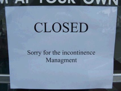 We May Want to Disinfect the Pies I assume that the person responsible for calling a battery of Utah State standardized tests "UPASS" -- later amended for obvious reasons to read "U-PASS" -- is also the genius behind this actual sign at the major intersection in Mt. Carmel Junction, Utah, south of Orderville on US 89.