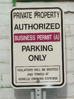 Ah, yes. Either $65.00 to get the boot removed, or $157.00 for the tow. This spurred the mayor to seek passage of a new ordinance, setting maximum fees for towing companies within city limits. These price caps, I'm told, were to be $15.00 for the boot and $25.00 for the tow. There's a very interesting question here, to which I don't know the answer: Who was it who got booted and/or towed? In other words, who has such clout with Mayor Thompson that he would not only propose the ordinance, but try to call an emergency meeting to get it passed? If he were engaged to be married, and if the wedding were imminent, and if the future mother-in-law already didn't like him, and if she were the bootee or the towee, this level of urgency might make sense -- but these conditions do not seem to apply. We may never know who elicits such a response, but that's okay. There are other fish to fry here at the blog. Before we throw them on the skillet, however, you need some more background. More Background For most American Forkers, the most recognizable description of the lot's location will be this: Its entrance and much of the lot itself are between the old Yogurt Parlor and the old Six Star discount store. For the rest of you, that's between Merchant Street and 100 West, on the north side of Main Street. There is an exit from the lot just south of the post office on Merchant Street. The lot is the private property of a prominent American Forker, Bill Jacob. (Did I mention that its private property?) The City's contribution is a small sign at the entrance, posted too high for some drivers to see, that says, "Private Parking. Permit Required." There are dozens of parking spaces in the lot, each reserved for someone, either current customers of a particular business, or employees, or perhaps others who have purchased the requisite permit. There is one sign for every parking space, and then some. Even if you miss the little City sign at the entrance, you could hardly miss, or even misinterpret, the other signs. There are many of these: